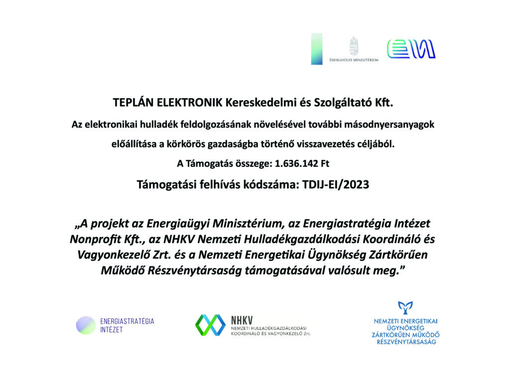 2023. évi termékdíjköteles termékekből keletkező hulladékokkal kapcsolatos hulladékgazdálkodási iparfejlesztési támogatás